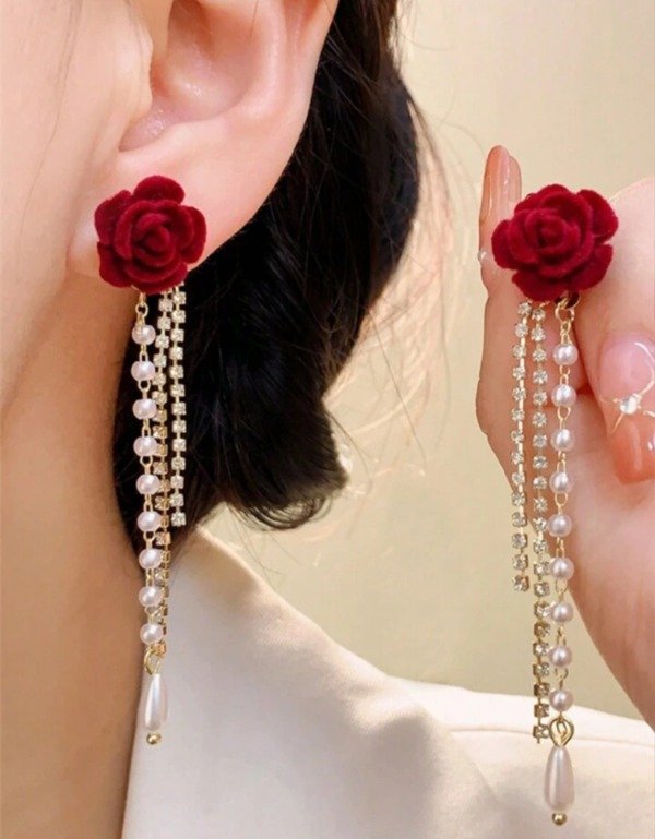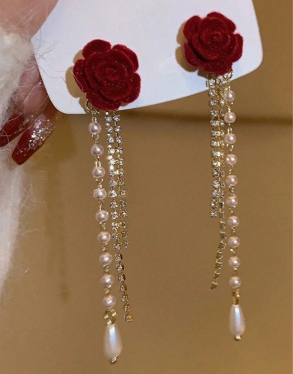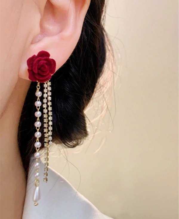 ARITOS AFELPADOS DE ROSAS ROJAS