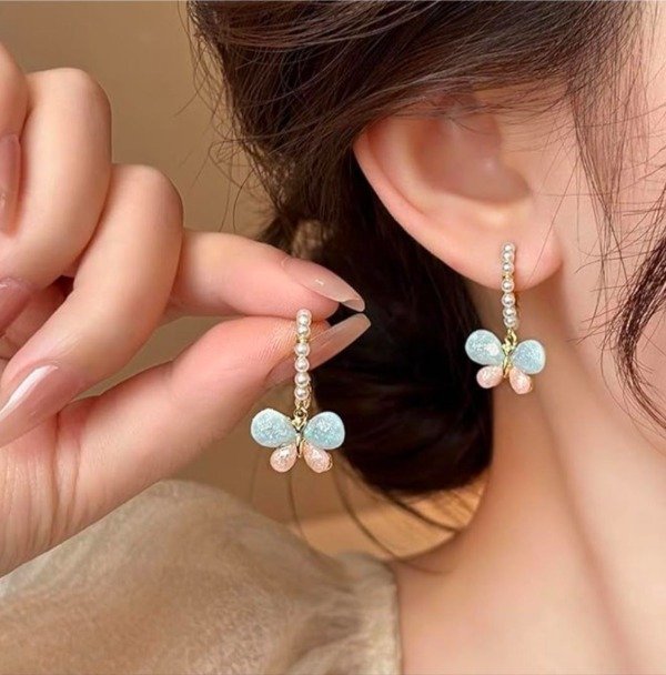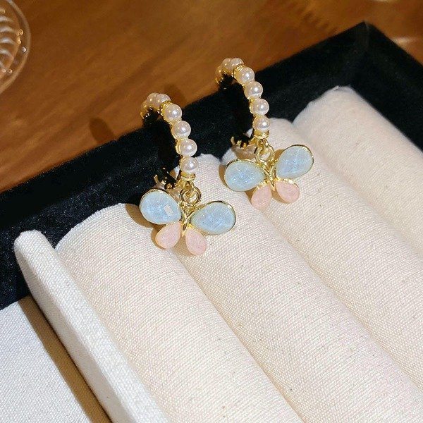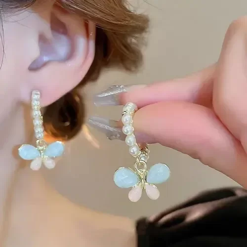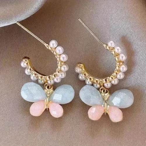 ARITOS MARIPOSA CON STRASS Y PERLITAS