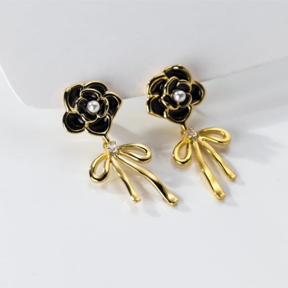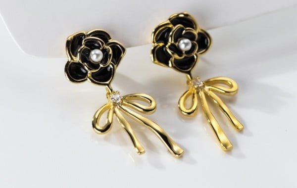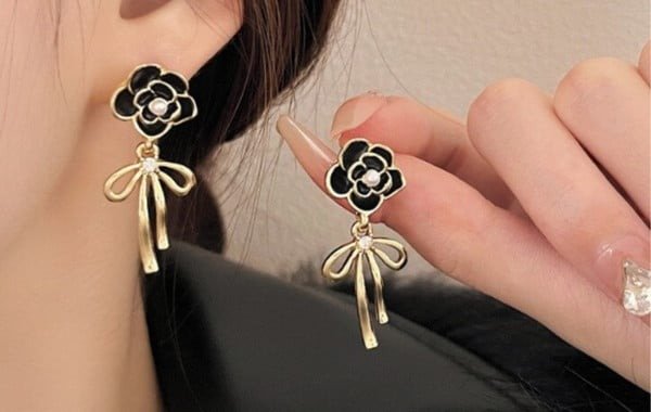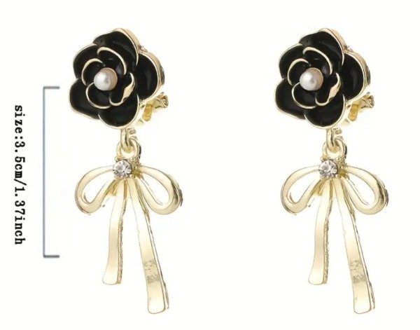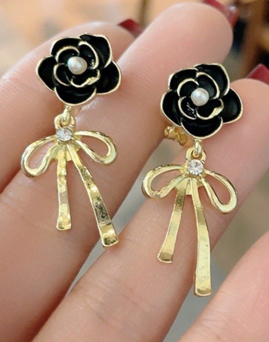 ARITOS ROSAS NEGRAS CON STRASS