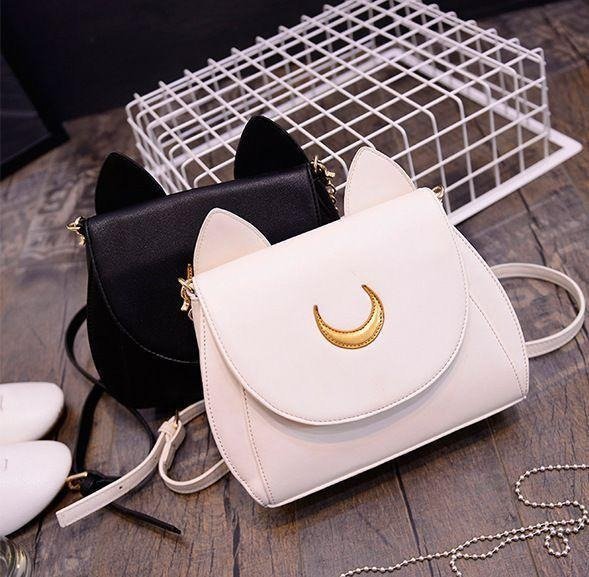 La diferencia entre esta cartera y la otra publicada aparte, es que esta cartera no tiene correa de ecocuero, sino que es una cadena de metal de aros grandes y gruesos color dorada, en combinación con la lunita de la cartera.