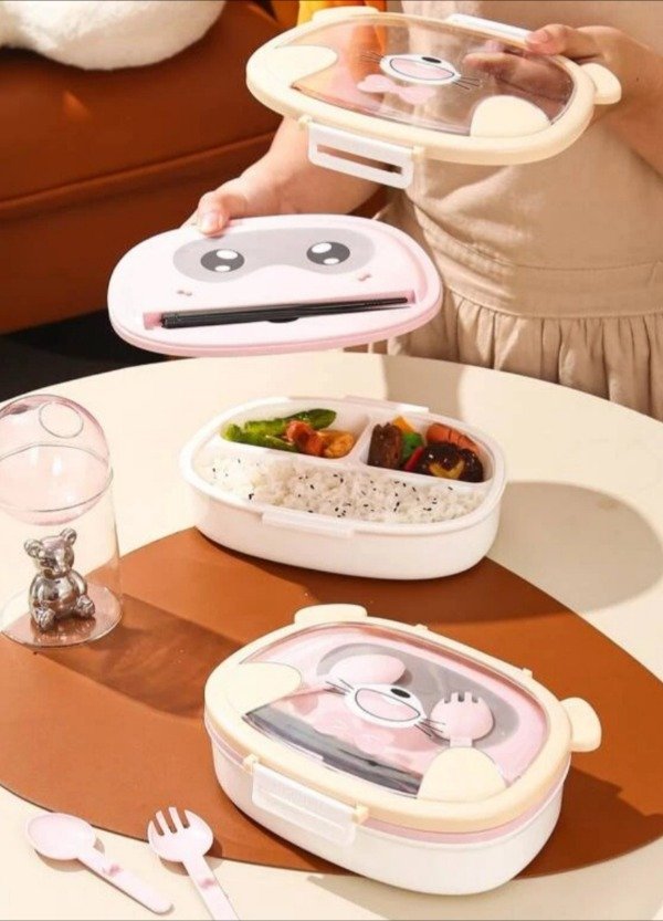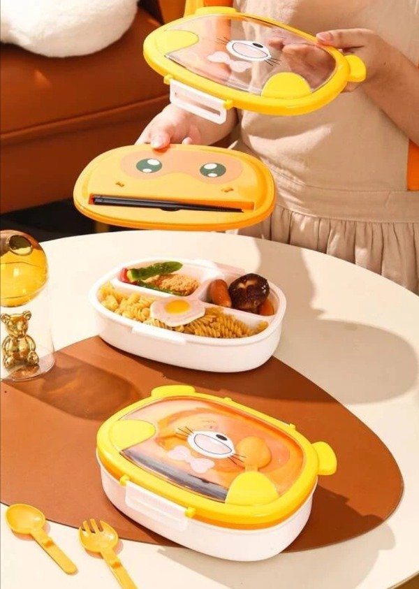 LUNCHERA OSITO CON CUBIERTOS - ROSA O AMARILLO