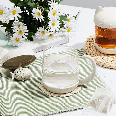 TAZA GATO PEZ CON INFUSOR PARA HIERBAS