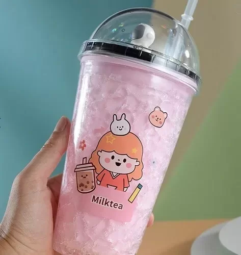 Vaso acrílico con efecto ice, con luz en la base y sorbete.