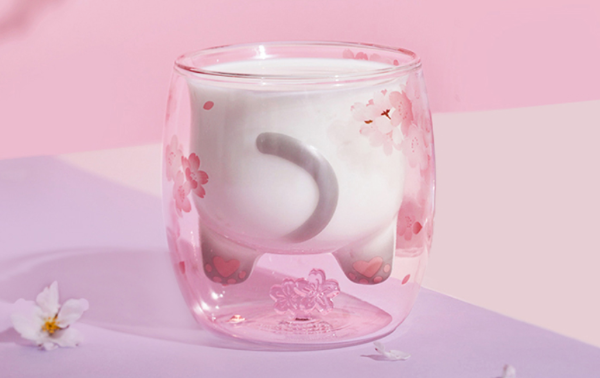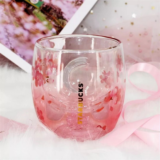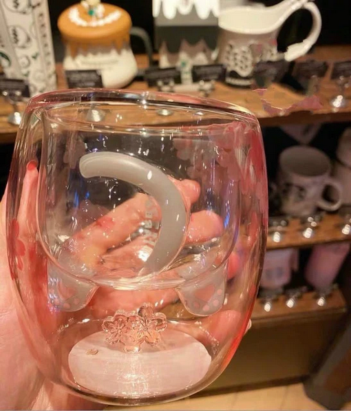 VASO DOBLE VIDRIO COLA DE GATITO Y FLORES SAKURA STARBUCKS COLECCION CHINA 2020