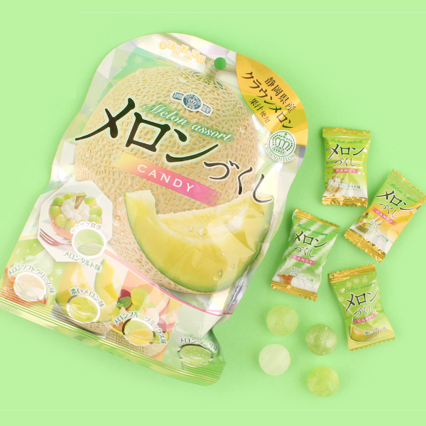 ¡Estas deliciosas golosinas de melón variadas de Senjaku contienen no solo uno, dos o tres, sino CINCO sabores y rellenos diferentes! Los sabores incluyen un 'Melon Soft Serve Ice Cream' con un centro de sorbete de vainilla, un dulce con sabor a melón simple pero fuerte, un 'Melon Soda' con pequeños trocitos gaseosos, la mitad de 'Melon Fruit Mix' es melón y la otra mitad es un dulce ensalada de frutas y el último sabor es una 'Tarta de melón' con un sabor maravillosamente realista a melón y pastelería. ¡Pueden parecer pequeños en tamaño, pero los sabores tienen un gran impacto! El paquete incluye aproximadamente 22 caramelos envueltos individualmente, todo en una hermosa bolsa con un jugoso diseño de melón. ¡Estos dulces son muy raros y difíciles de encontrar fuera de Asia!