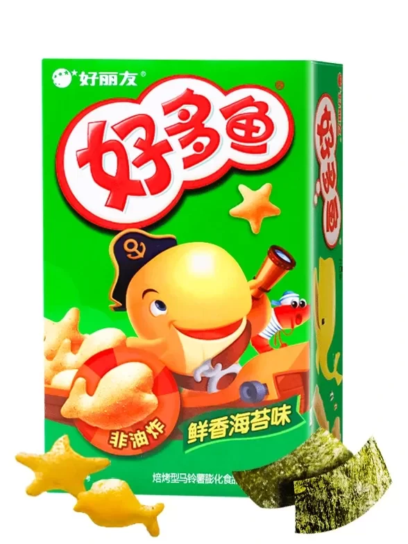 Deliciosas papitas de arroz infladas y crujientes con forma de animalitos marinos.