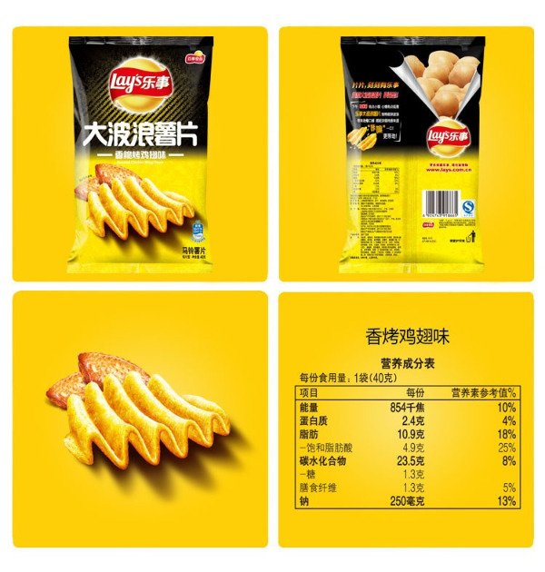 Papas fritas de la emblemática marca mundial. Sabor pollo asado, paquete de 40 grs.