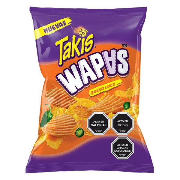 Papas fritas onduladas crocantes sabor queso picantes. Pàquete grande 170 grs. Origen México